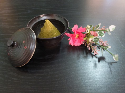 柚子の皮と唐辛子をすりつぶし、長期的に保存が出来るように、塩分を加えたものです。